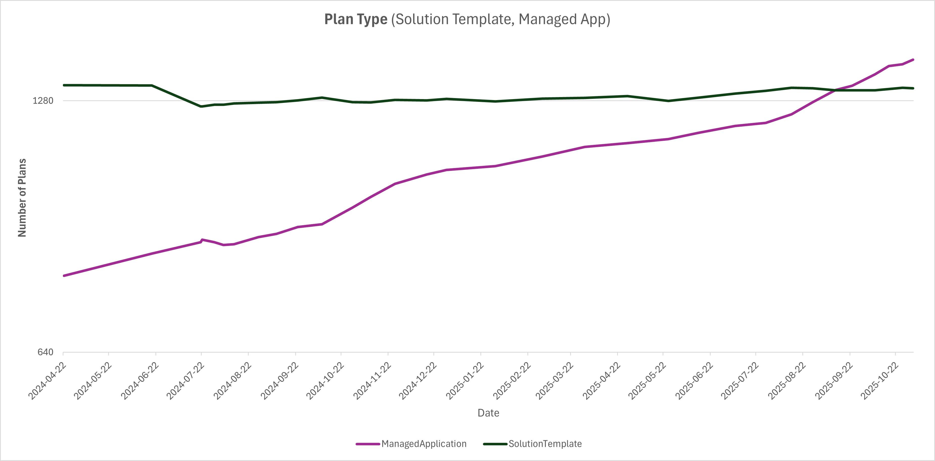 Managed App vs. Solution Template Plan Type Growth (Azure Apps)